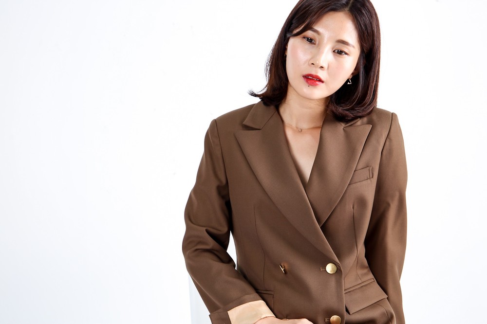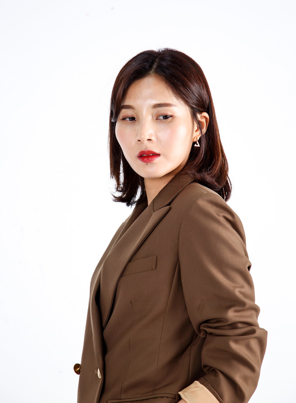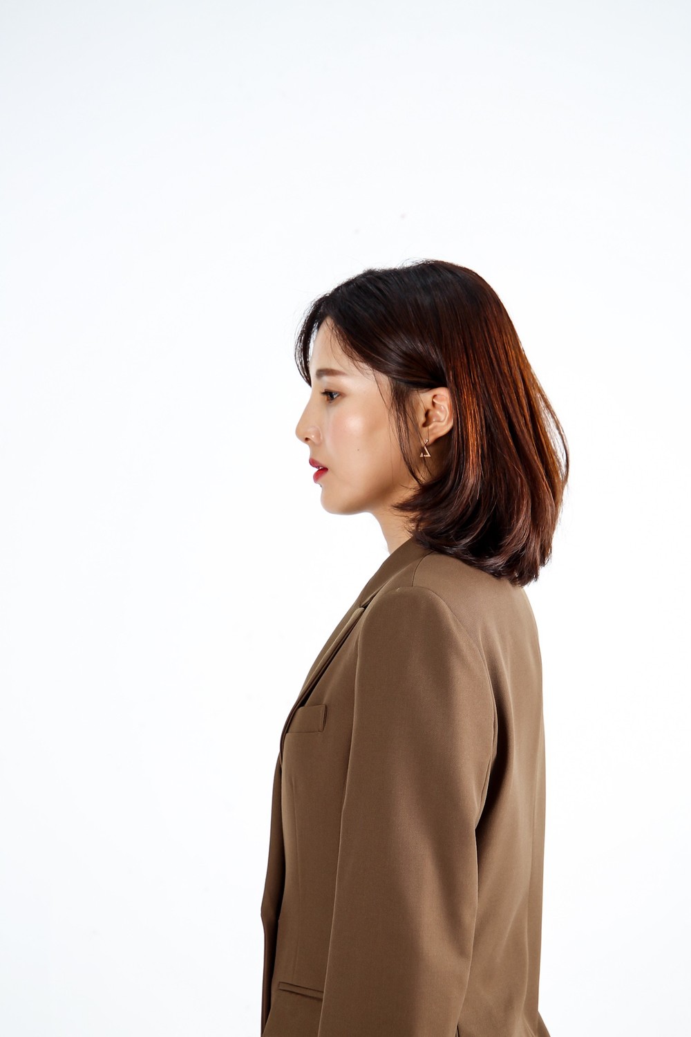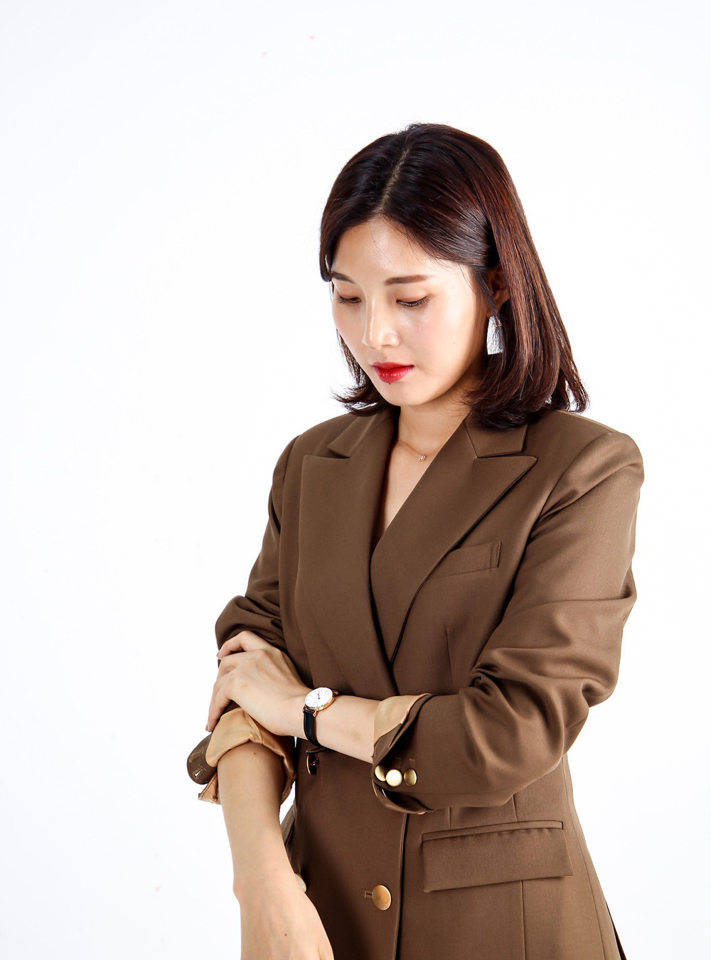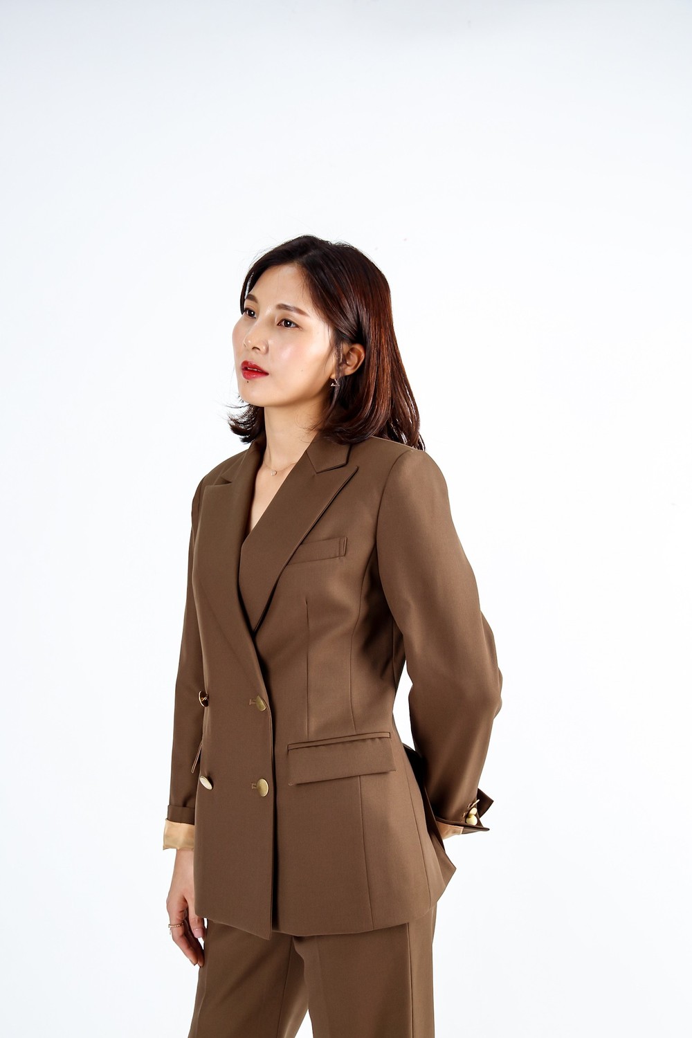 허리 라인을 살린 더블자켓은 여성의 실루엣을 돋보이게,