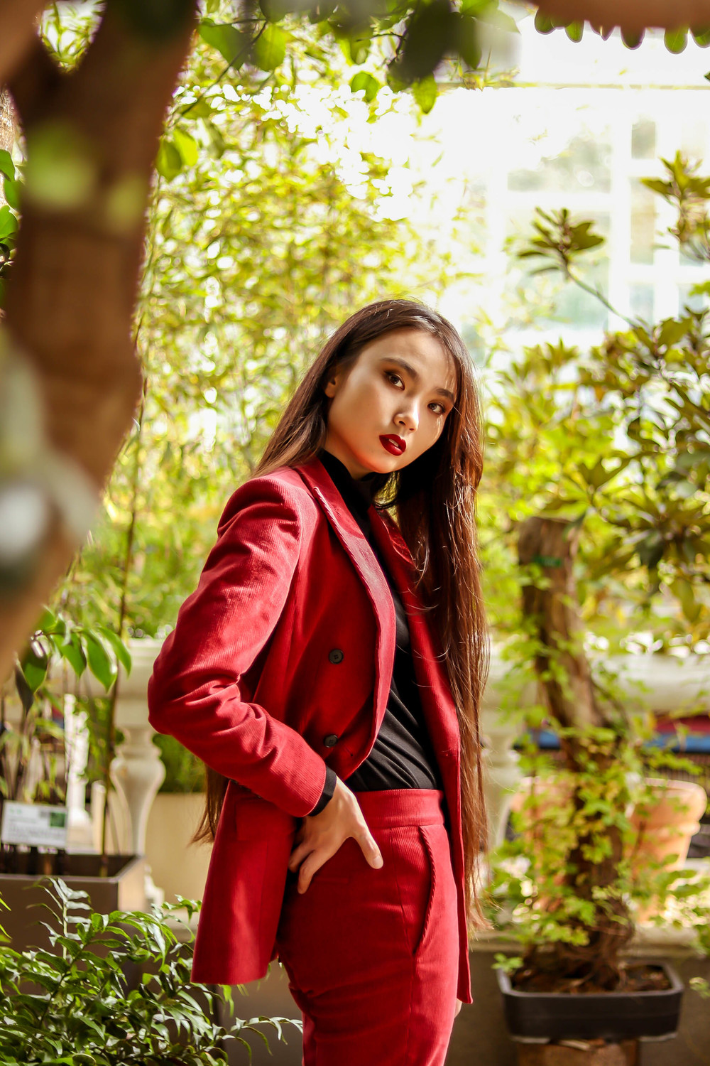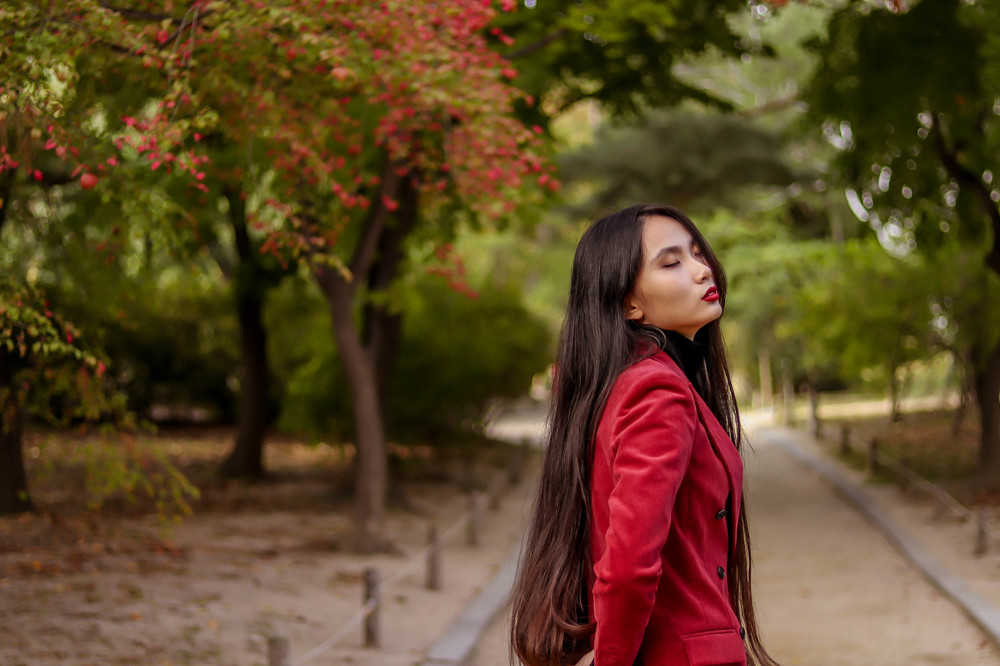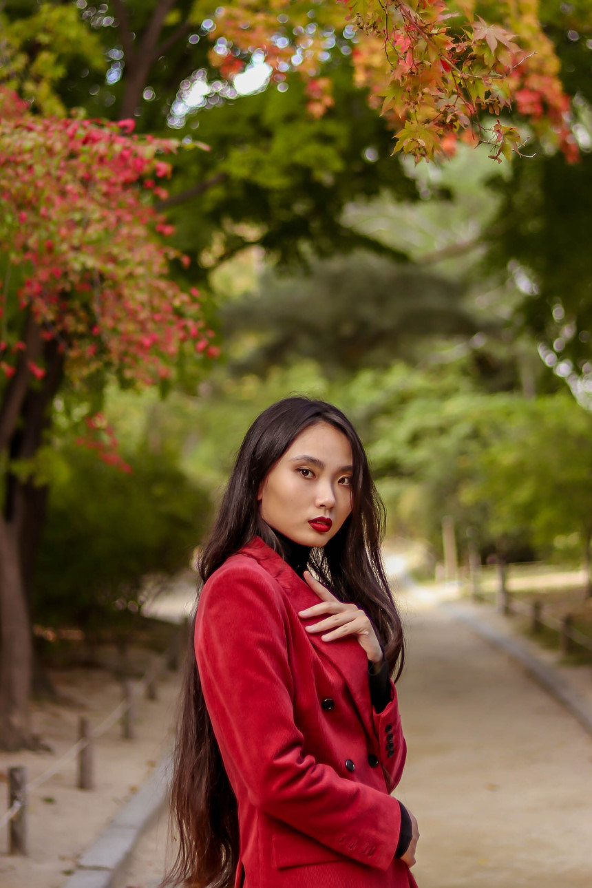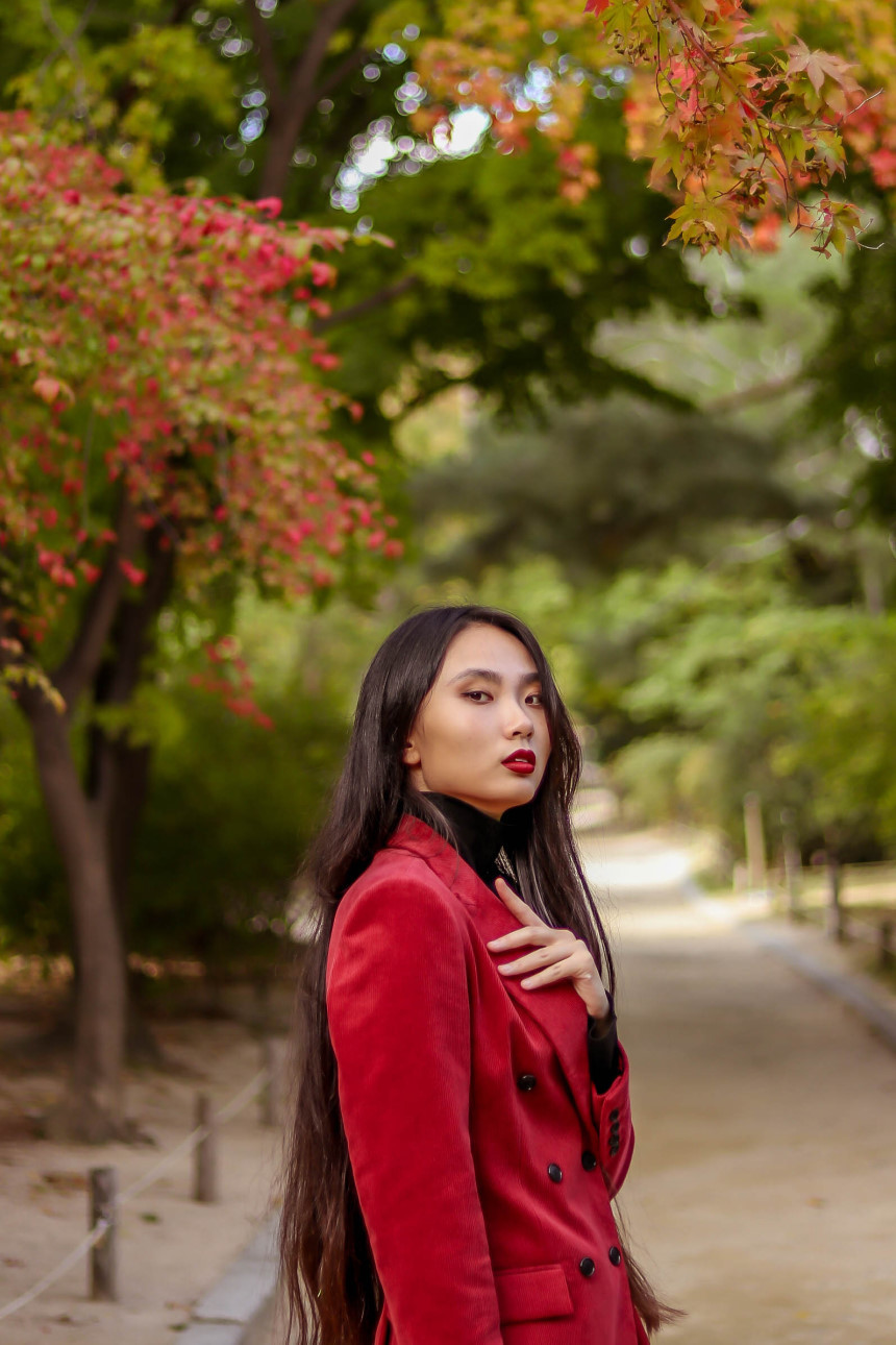 눈에 띄는 컬러여도 부담 없고 자연스러운 캐주얼의 매력이 더해진 코듀로이 수트로