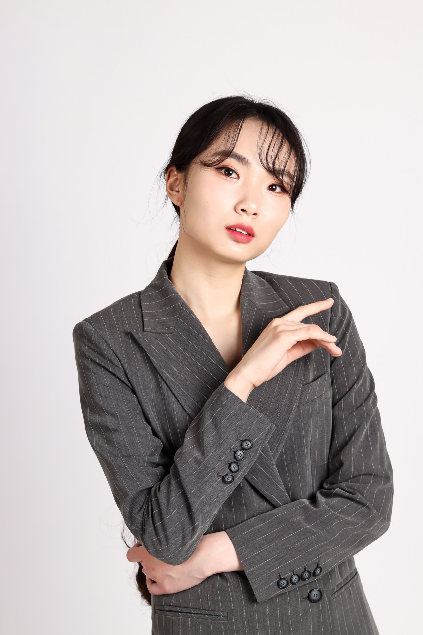 여성 수트에는 잘 쓰이지 않는 가슴 포켓을 리얼로 제작하여