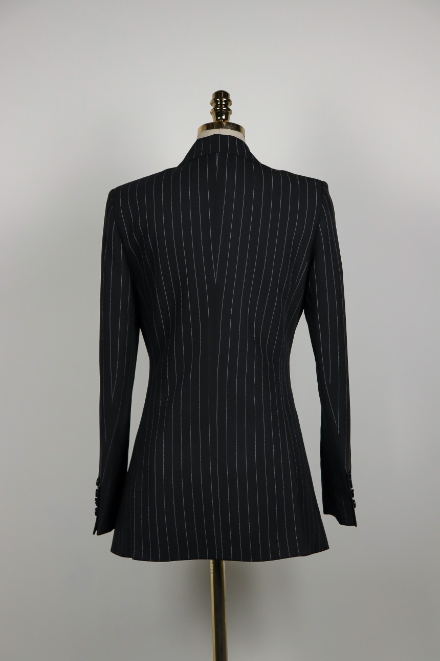 STRIPE DOUBLE BREASTED JACKET - BLACK