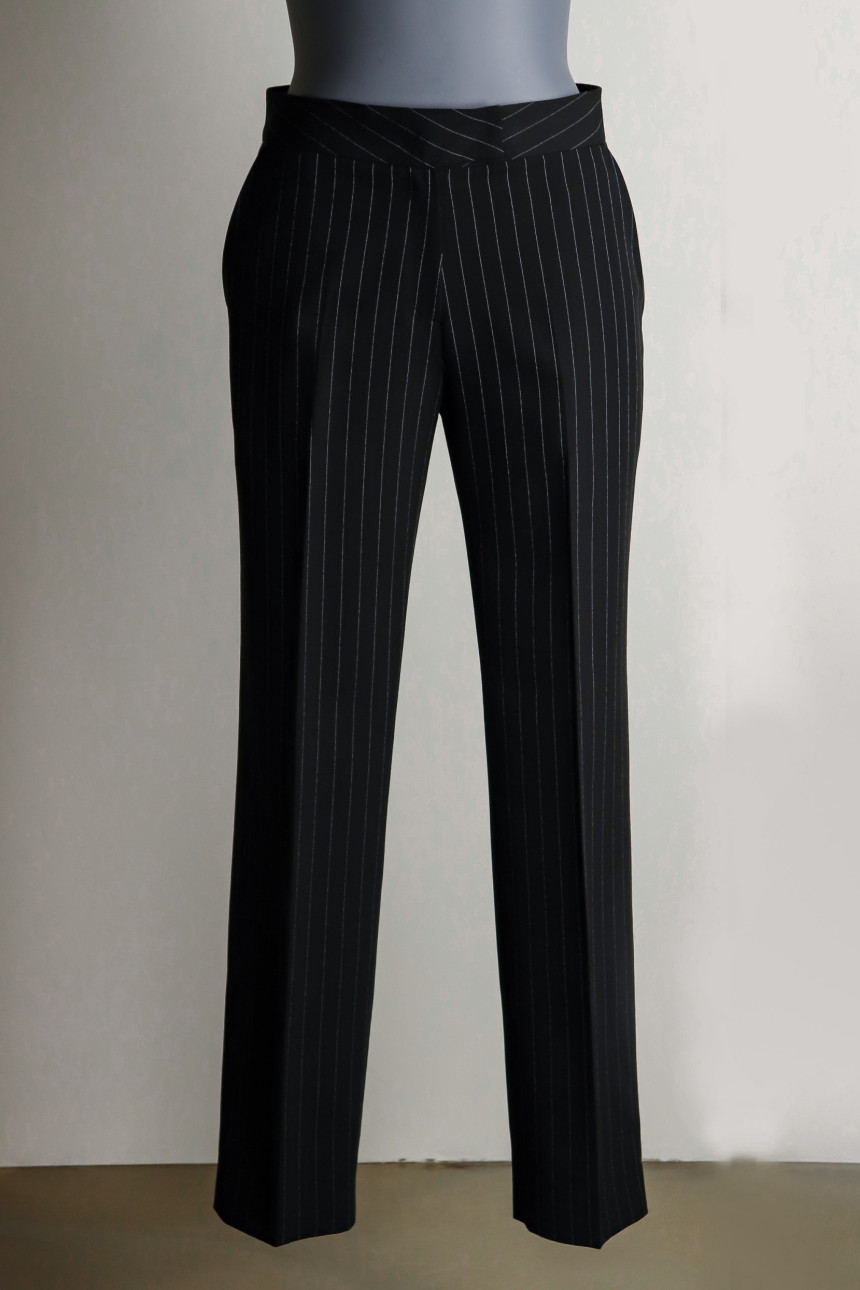 STRIPE SLIM STRAIGHT PANTS - BLACK
