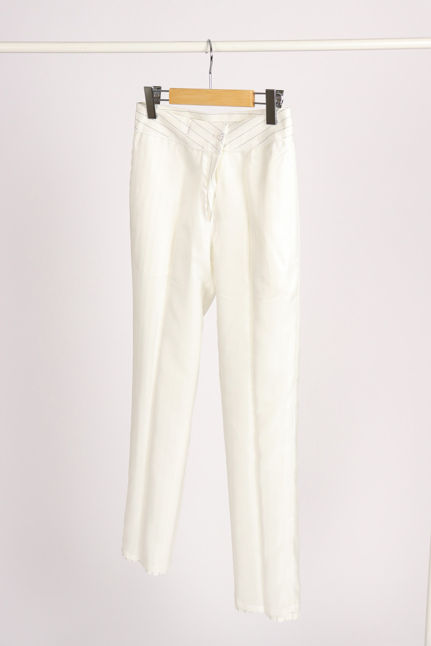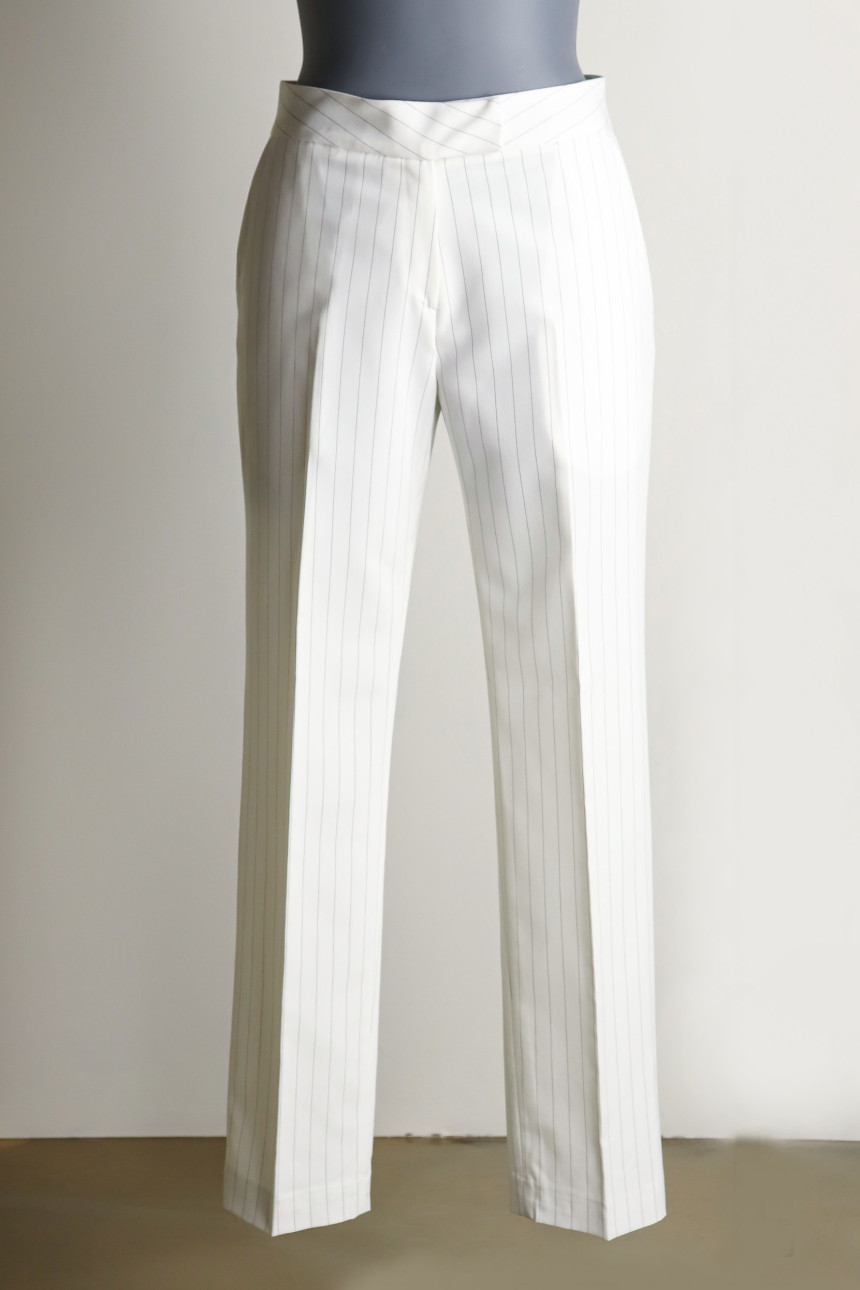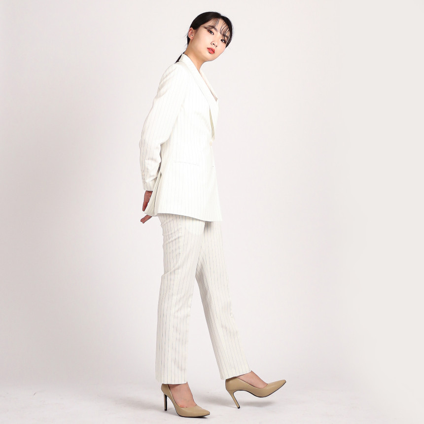 STRIPE SLIM STRAIGHT PANTS - WHITE